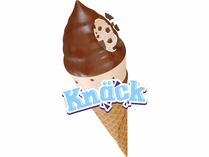 Gräddglass med nougatsmak och smörkrokant, doppad i mjölkchoklad